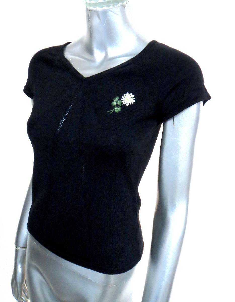 二点落札で送料無料! K02 keita maruyama ケイタマルヤマ 綿 100% 黒 花柄 刺繍 ニット トップス 1 レディース ブラック 半袖