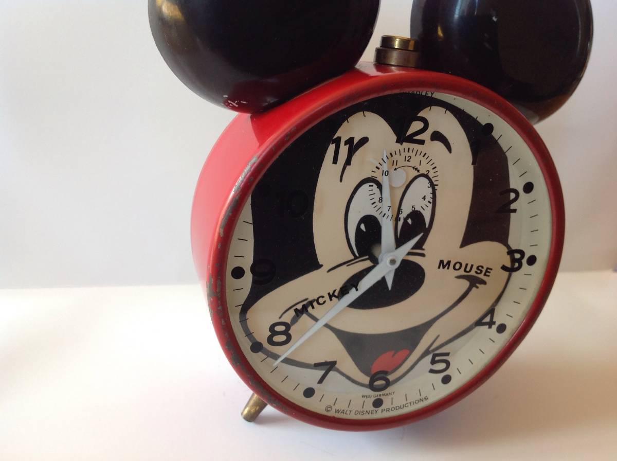 古い物 レア物 ミッキーマウス 目覚まし時計 サビ 汚れ 塗装ハゲ有ります。作動しますが、正確に動きません。