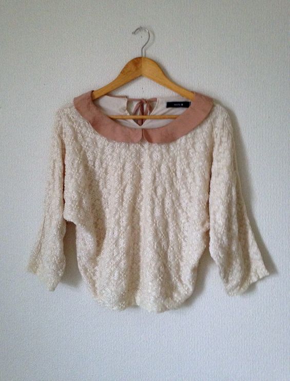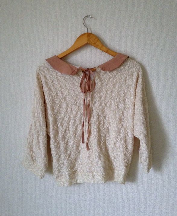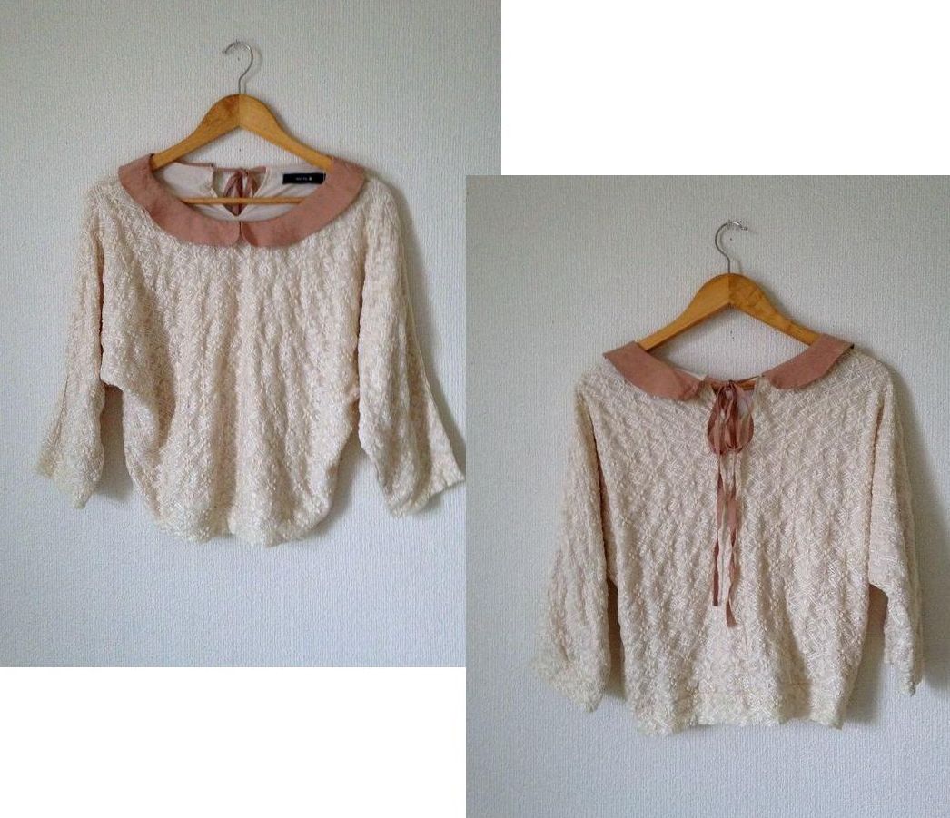 ミスティック■ベージュ バックリボン レースかぎ編み ゆったり シャツ ブラウス