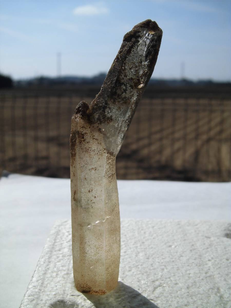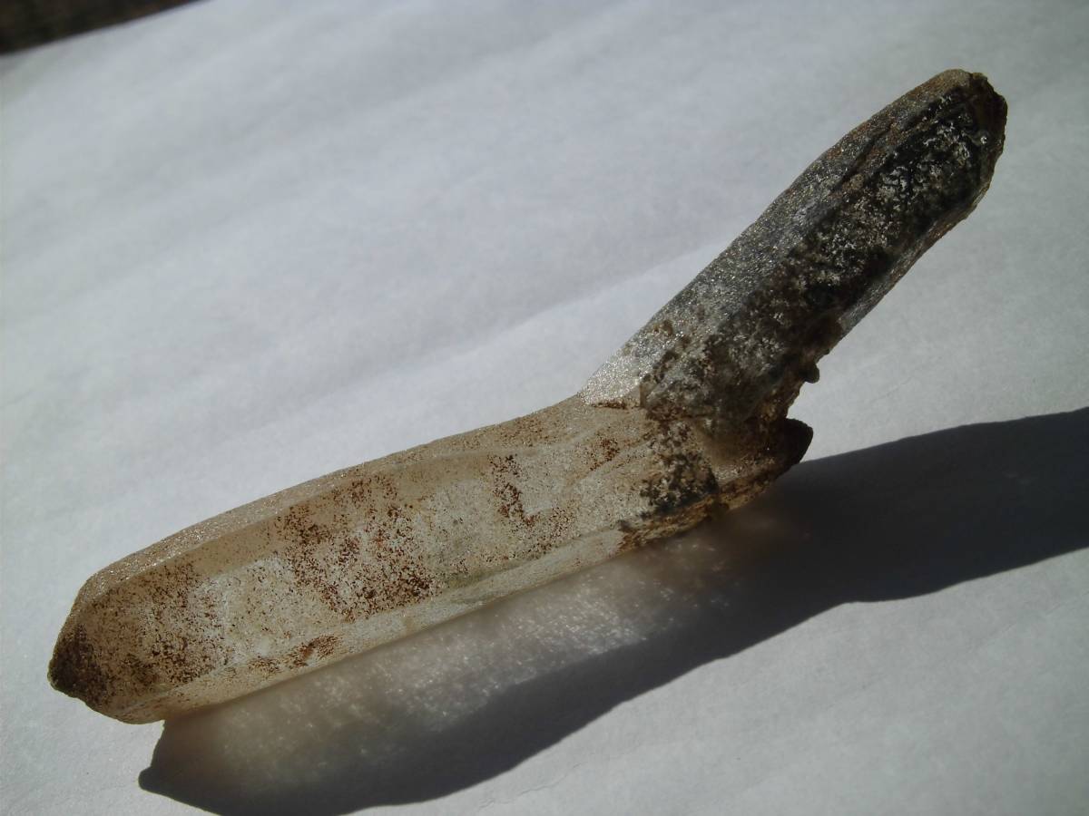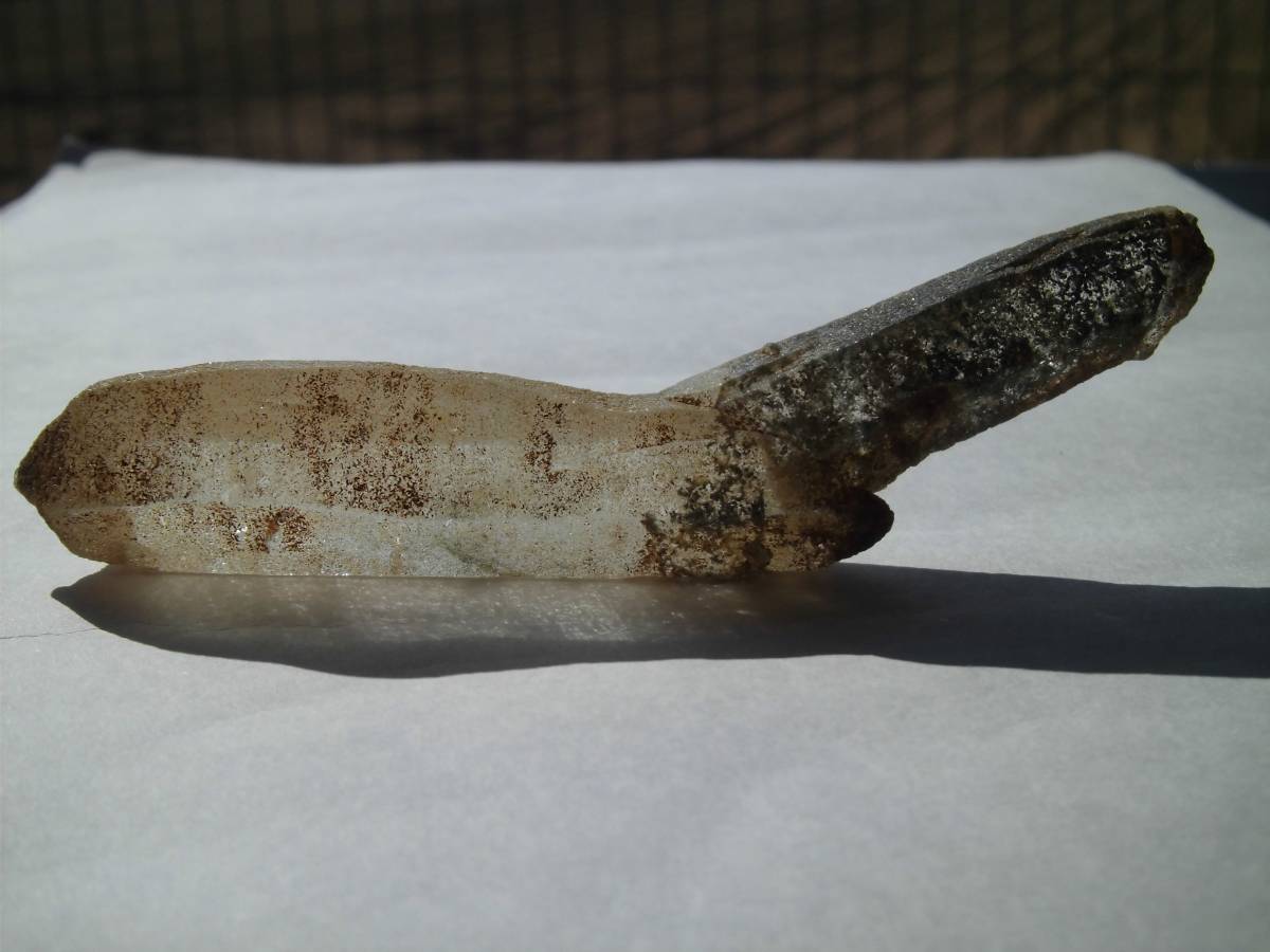 ・ご覧の様に陰陽の2種の水晶ポイントが、およそ152°の角度でくっつきながら成長した、大変珍しい水晶です。