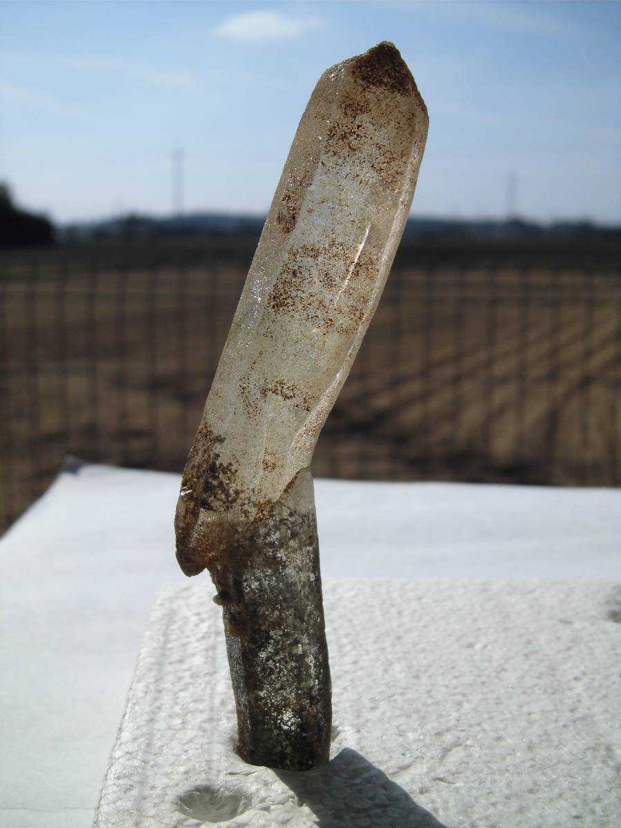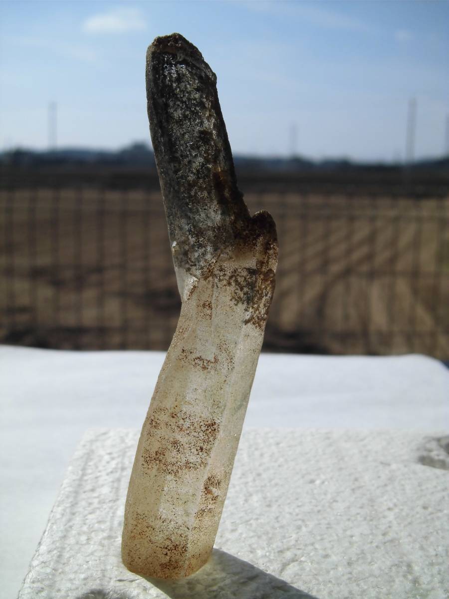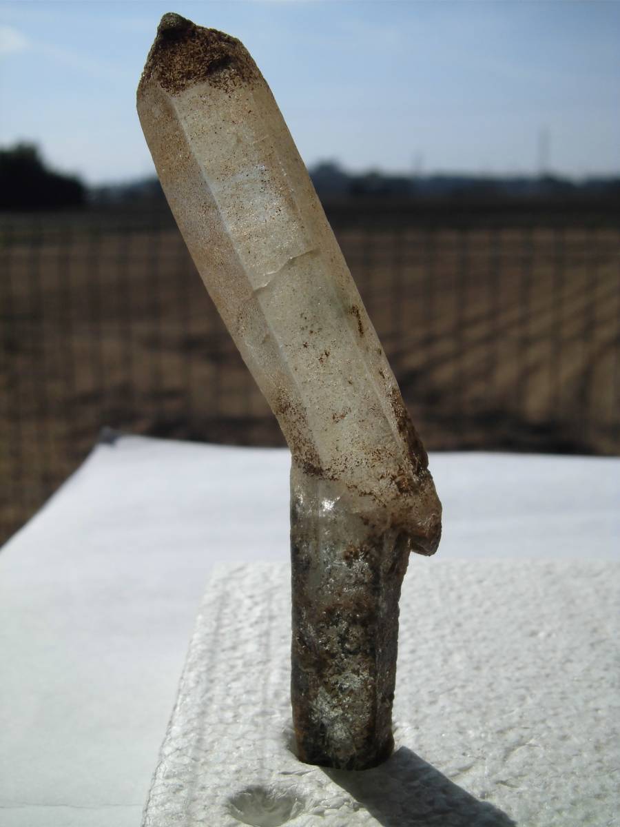 ・ご覧の様に陰陽の2種の水晶ポイントが、およそ152°の角度でくっつきながら成長した、大変珍しい水晶です。
