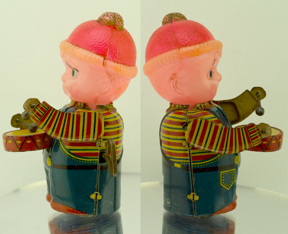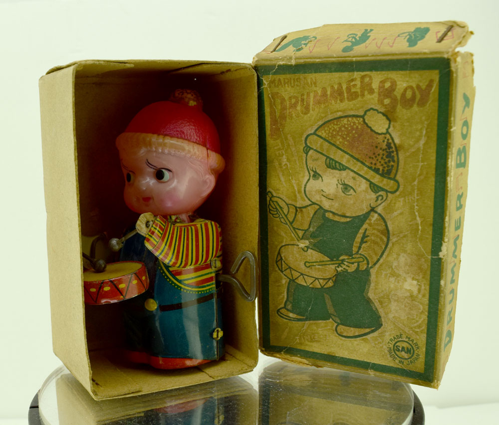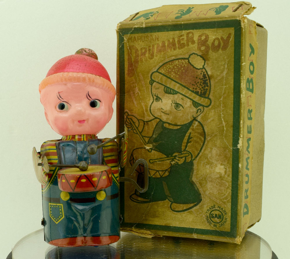 古いマルサン製ドラマーボーイ(DRUMMER-BOY)はとても可愛いおもちゃですのでコレクションにどうぞ。 |