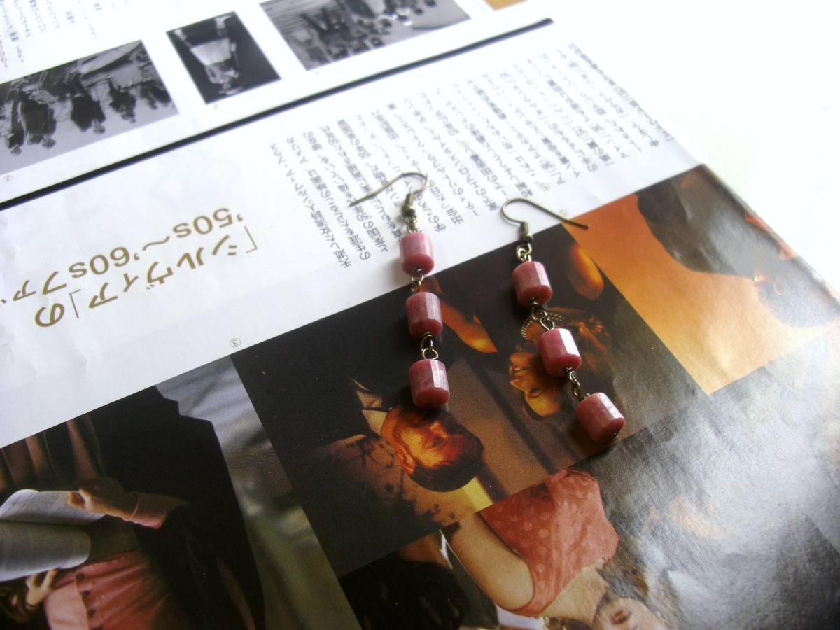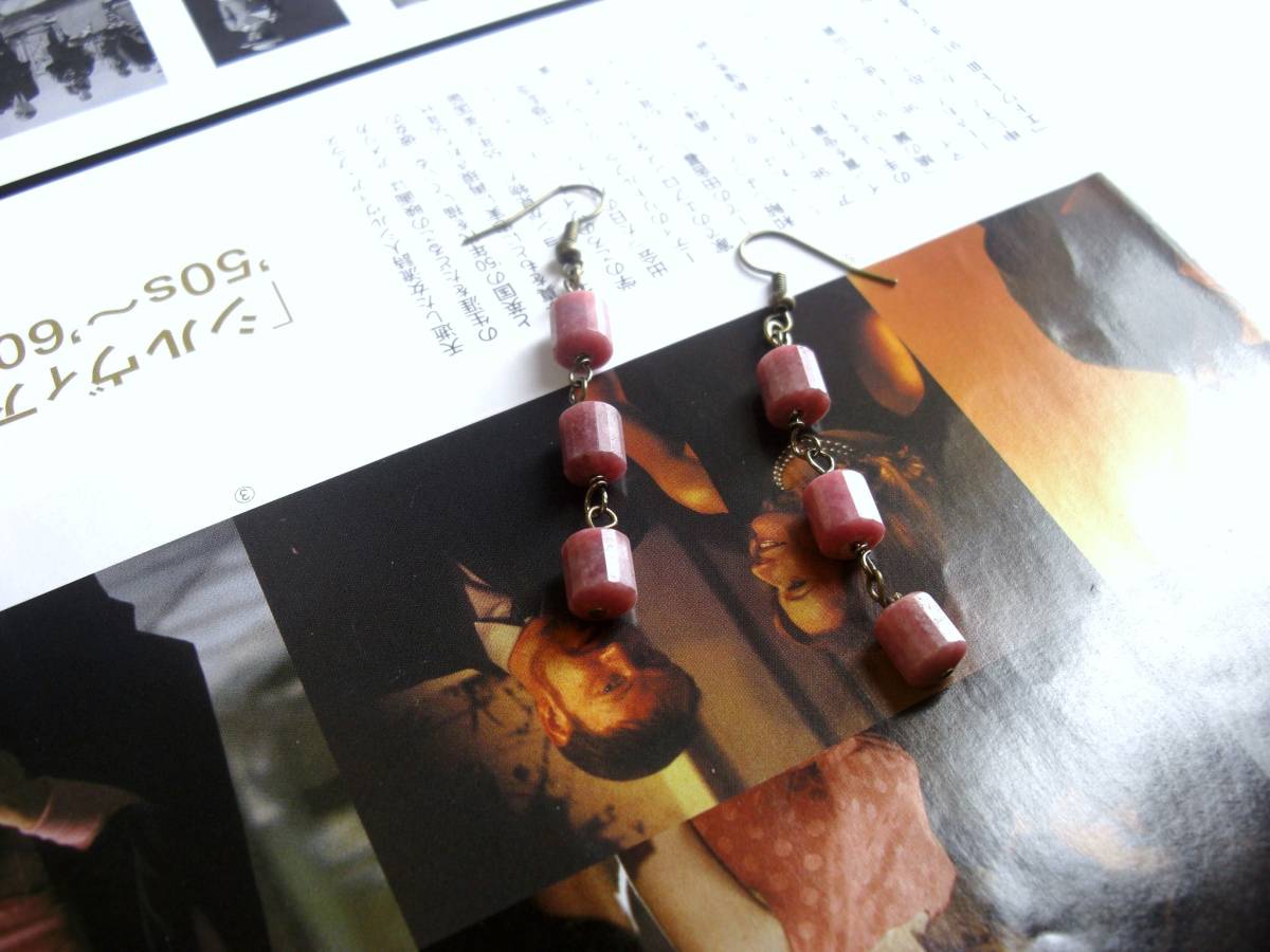 心を躍らせるもの・・シリーズです♪春色コレクション・・シックなダークピンクのロードナイトのピアスです♪8ミリ位のロードナイトを繋いでクラシカルなデザインです♪長さは全長6・5センチ位です♪イヤリングにも変更出来ます♪パ リ(??)っぽいアンティークな雰囲気で作りました。お揃いのネックレスやブレスレットも出品しています♪シンプルで飽きのこないいつまでも着けられるデザイ ンを考え て作りました!ハンドメイドをご理解頂いて ノークレーム、ノーリターンでお願いします
