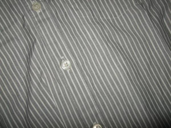 良品、ユーズド感は多少はありますが、きれいに着ていただける範囲のもので、手入れもしております。サイズはS、スティーブンアラン×NAVEのシャツです。素材はコットン100、白地にブルー系のストライプ、コンパクトですっきりとスマートに着れるサイズ感のもので、冬場は、セーター、カーディガンのインナーにもできるシャツです。身幅約43、丈約60.5、肩幅約34.5です。ぜひご検討ください。