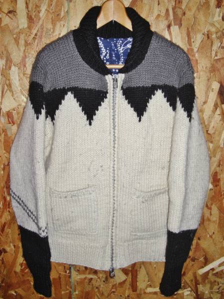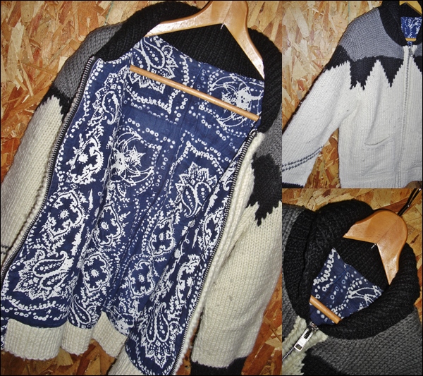 ハンドメイド ニット カウチンセーター ジップ 裏地 ペイズリー セーター ネイティブ柄 ビンテージ K20B21