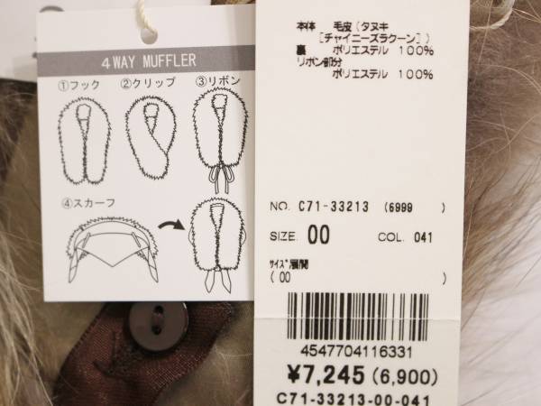 新品*オペークドットクリップ*4wayラクーンファーマフラーティペット【393-2327】