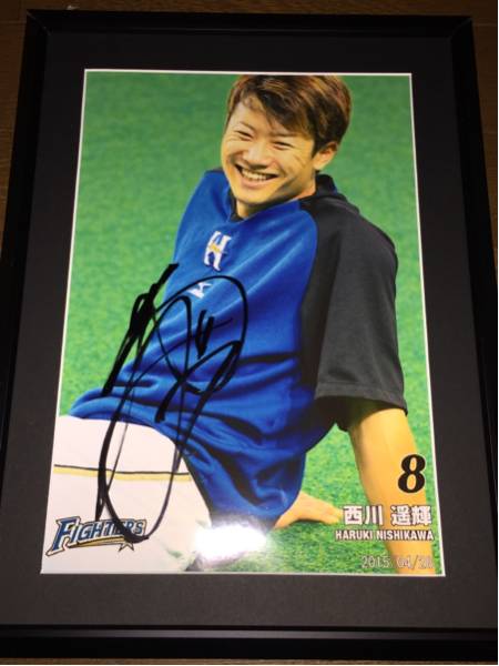 北海道日本ハムの西川遥輝選手の直筆サイン入りA4サイズの生写真額装品です。(額の種類は多少変わる事がございます。)
