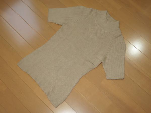 ICB 半袖ハイネックセーター ベージュです。ウール100%。表記サイズはSですが、良く伸びますので、普段7号から9号の方に丁度良いと思います。平置で脇下身幅38cm、丈56cmです。柔らかくて、肌触りが良く、伸縮性があり、とても着易いです。1度のみ使用しクリーニングした美品です。ご検討宜しくお願い致します。ノークレーム・ノーリターンでお願いします。(I54)
