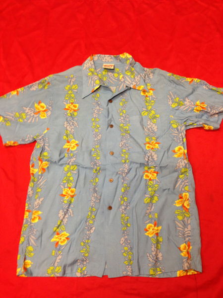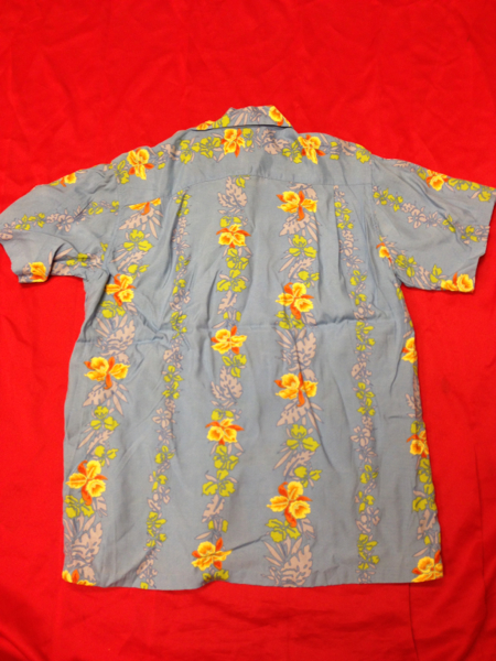Hawaiian ALOHA レーヨンアロハシャツ 青系 リーフ柄 M アメカジ