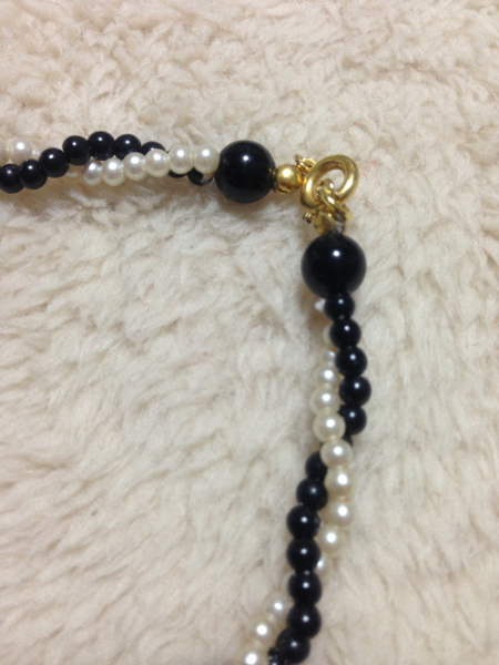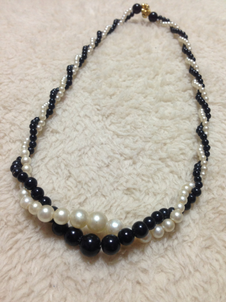 ツイスト、コンビネックレスです。フェイクパール仕様です。長さは21cmです。