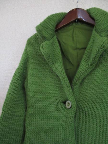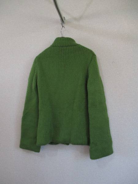 | 商品紹介 | 明るめの緑のニットジャケットです。 ざっくりとしたローゲージの網目がオシャレです。 コットン素材の裏地が付いています。 ※規定の封筒に入らない為、レターパックでの発送はできません。 《素材》 表地:毛70% アクリル30% 裏地:綿100% |