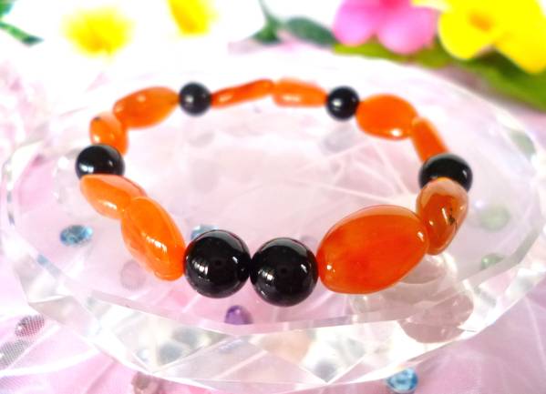 ★ハロウィンカラー☆秋の収穫祭★オレンジボツワナアゲート★オニキス★ ☆17cm☆