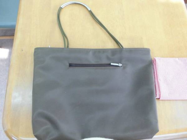 茶色のトートバッグです。A4サイズ入ります。持ち手にシルバー金属?がついているものになります。(写真で見て頂くと、白っぽいところになります。)