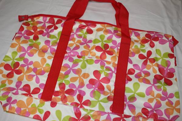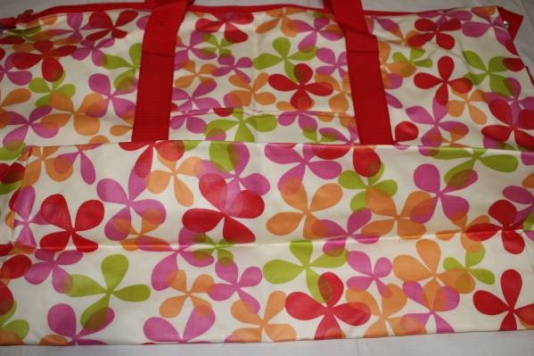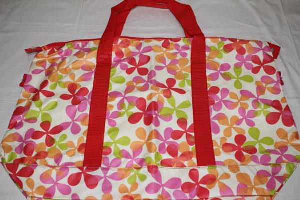 即決 ジップ&ポケット付き 大きなバッグ GOTO旅行用鞄アウトドアスポーツ大活躍! 目立つカラフルレッド花柄 飛行機内持ち込みOK!