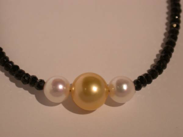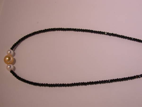 | svタヒチゴールドパール、アコヤパール、ブラックスピネル、ネックレス |