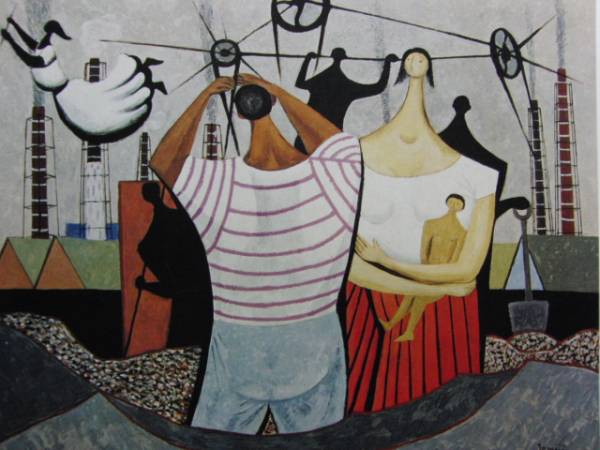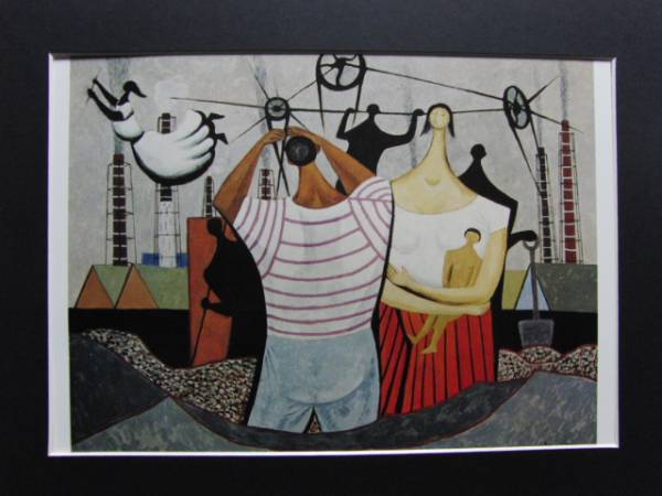 北川 民次、工場、限定希少画集画より、新品高級額装付