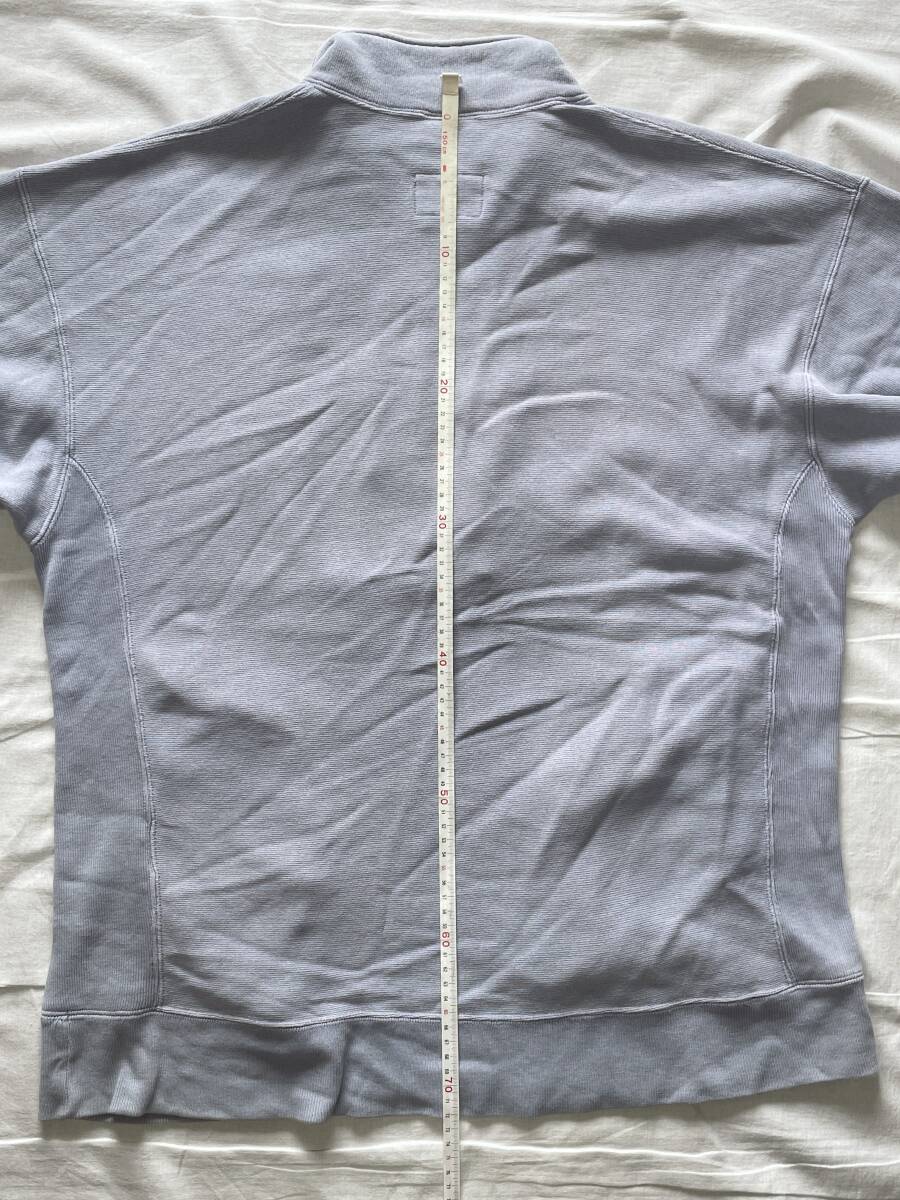定番リバースウィーブを使用し衿部分をハーフジップ仕様、ワイドシルエットにアレンジ。