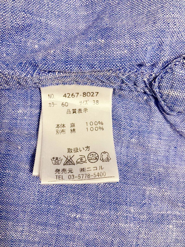 NICOLE ニコル リネンシャツ サイズ38(M)リネン100% ブルー 長袖