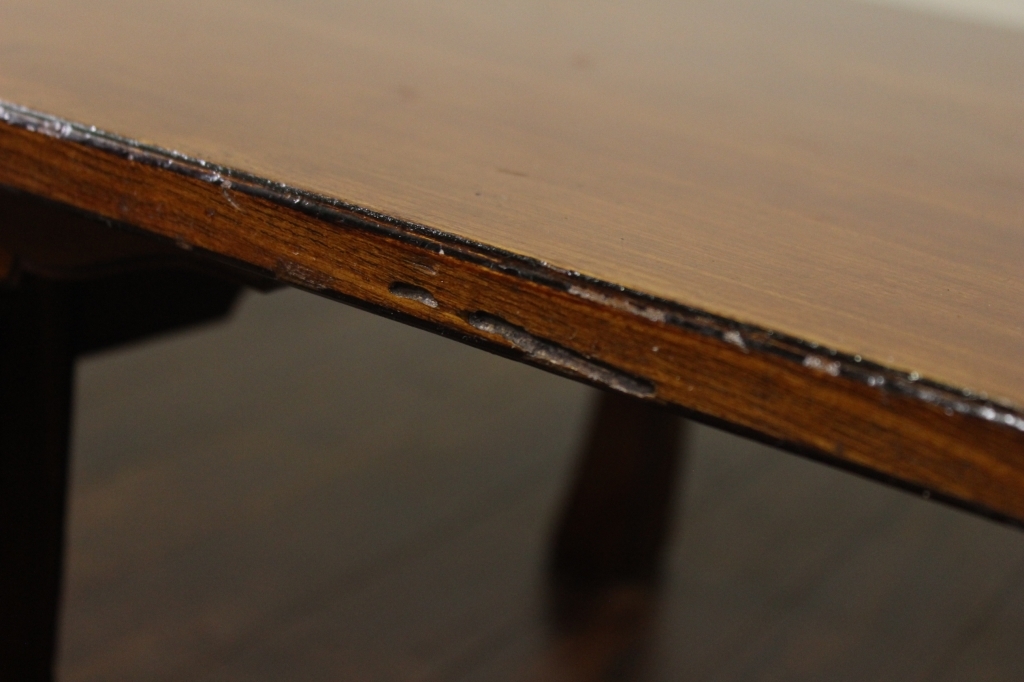 天板は欅材の一枚板。綺麗な杢模様が素敵です。 折りたたみがきくので収納に重宝。 使いやすいサイズで実用性抜群、レトロ系アイテムとしてオススメです。 |