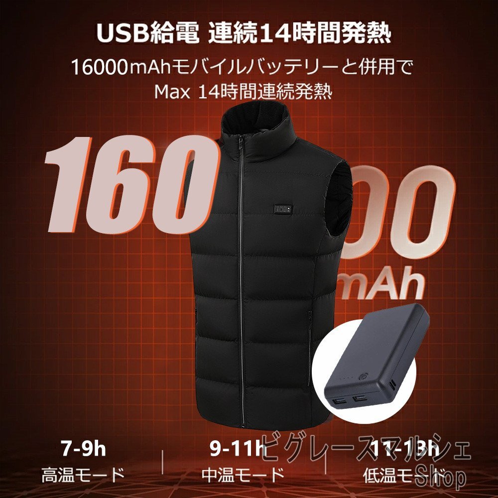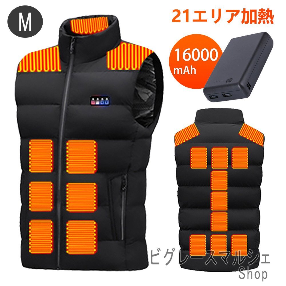 電熱ベスト バッテリー付き 16000mAh 21箇所発熱 ヒーターベスト 電熱ジャケット ベスト 中綿 3段階調温 速暖 洗える 電熱ウェア hw1387.M