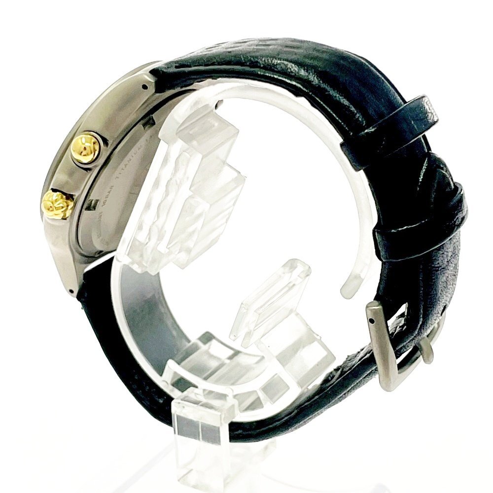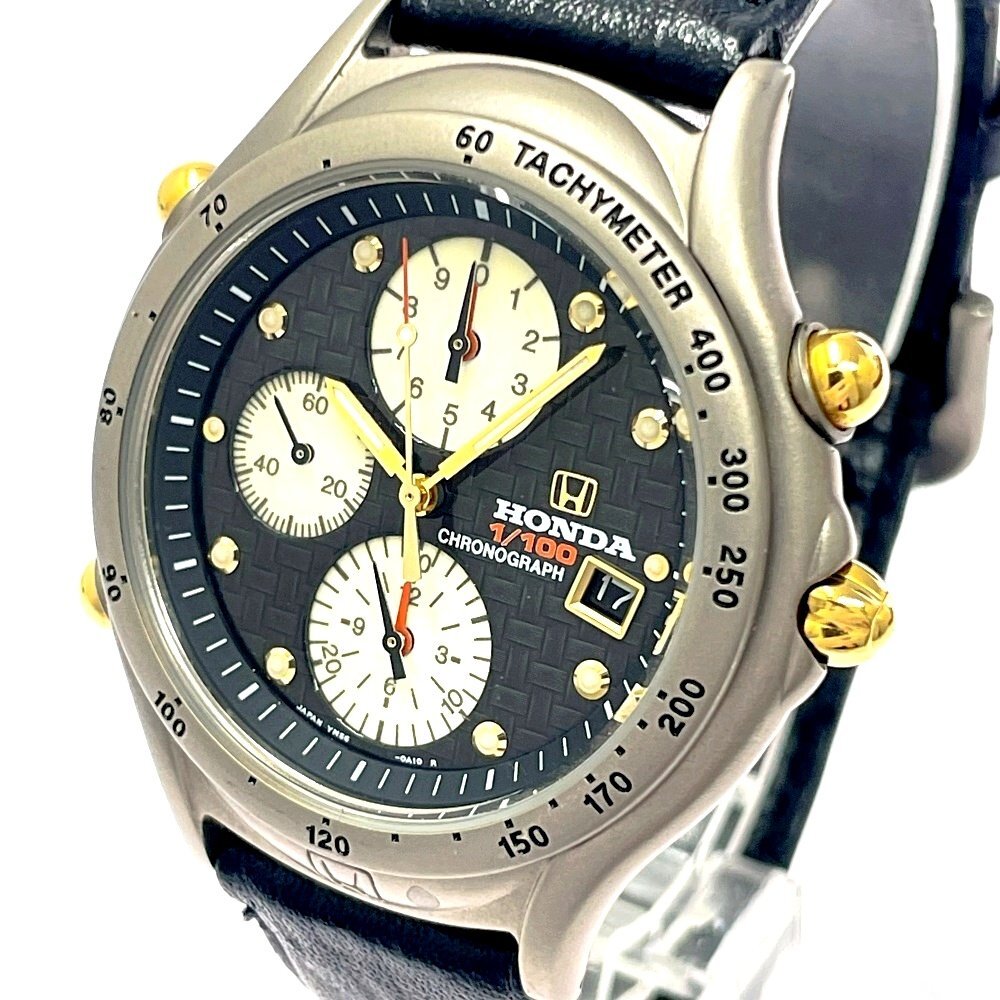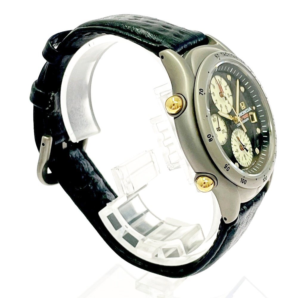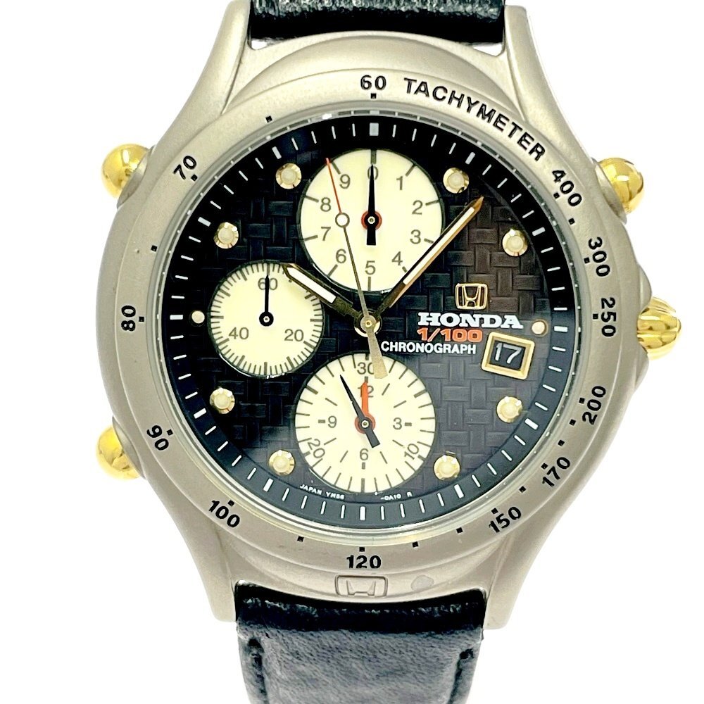 【1円スタート】【訳あり品】HONDA ホンダ YM56-0A10 クロノグラフ チタン ブラック系文字盤 クオーツ メンズ腕時計 499354