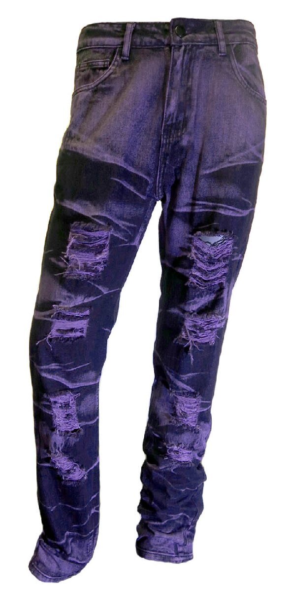 新品 34INCH ダメージ デニム パープル 抜染 紫 2776 メンズ スキニー スリムパンツ タイダイ クラッシュ ジーンズ ストレッチ ジーパン