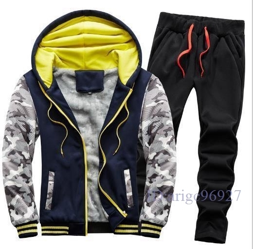 E409★スウェットメンズ 厚手 スエット ルームウェア スポーツ 上下セット カジュアル 秋冬防寒 裏起毛 ジャージフード付き大きいサ