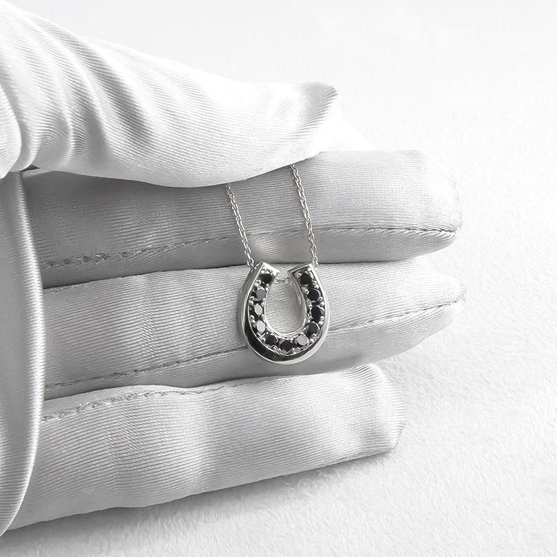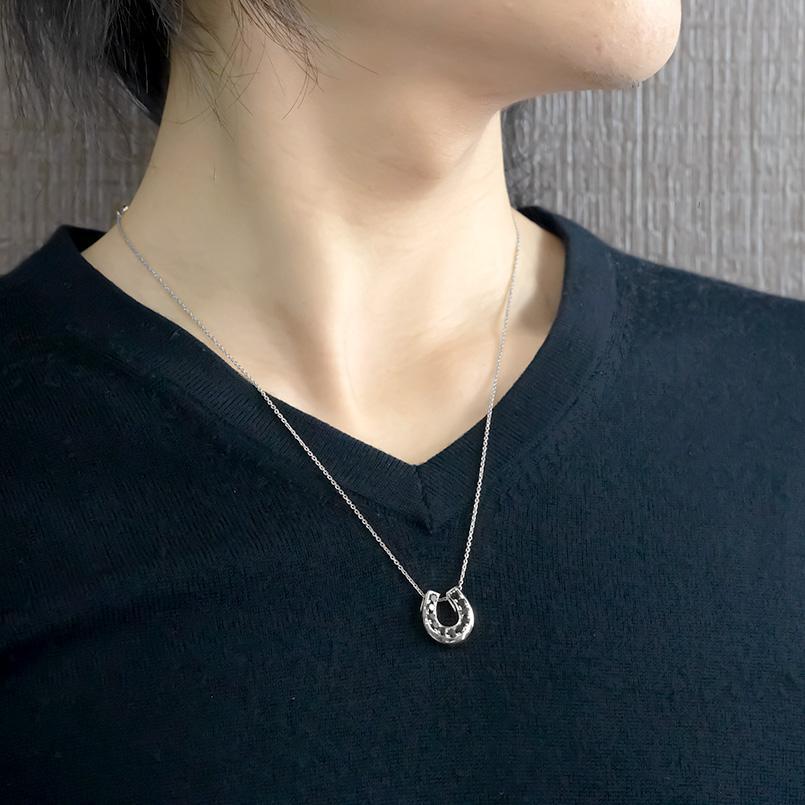 端正なフォルムと重厚感のある馬蹄モチーフのペンダント
