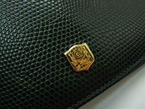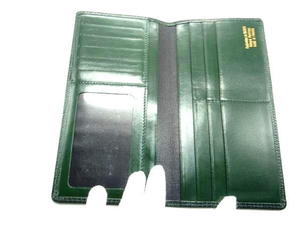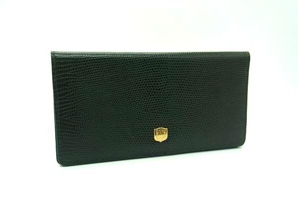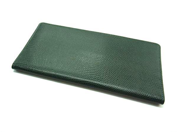 ■美品■ リザード型押しレザー 二つ折り 長財布 ウォレット 札入れ レディース メンズ グリーン系 DY0640