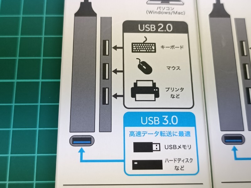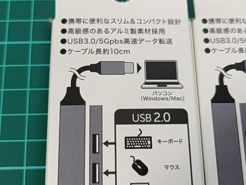 1つのUSB Type-Cポートを4つ(USB3.0×1+USB2.0×3)のUSBポートに増やすことができます。