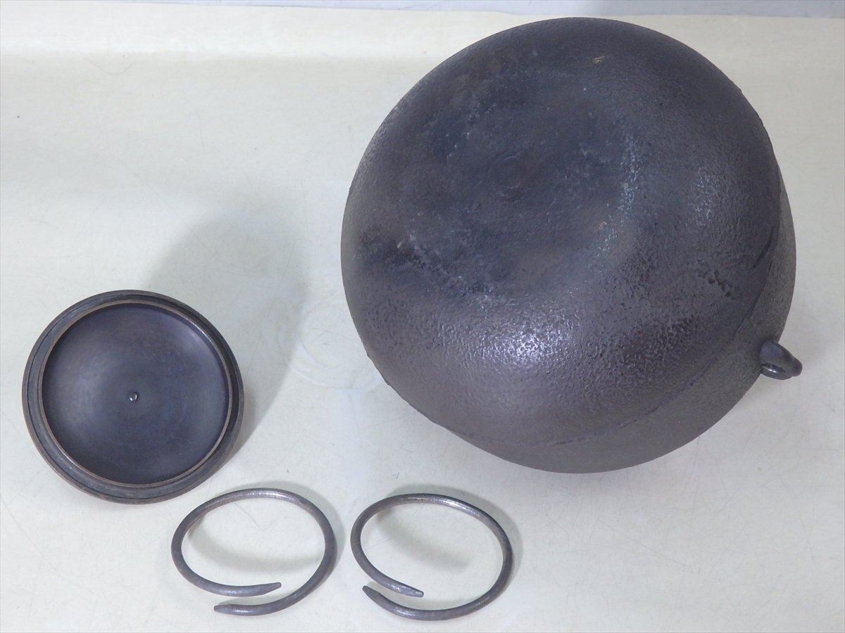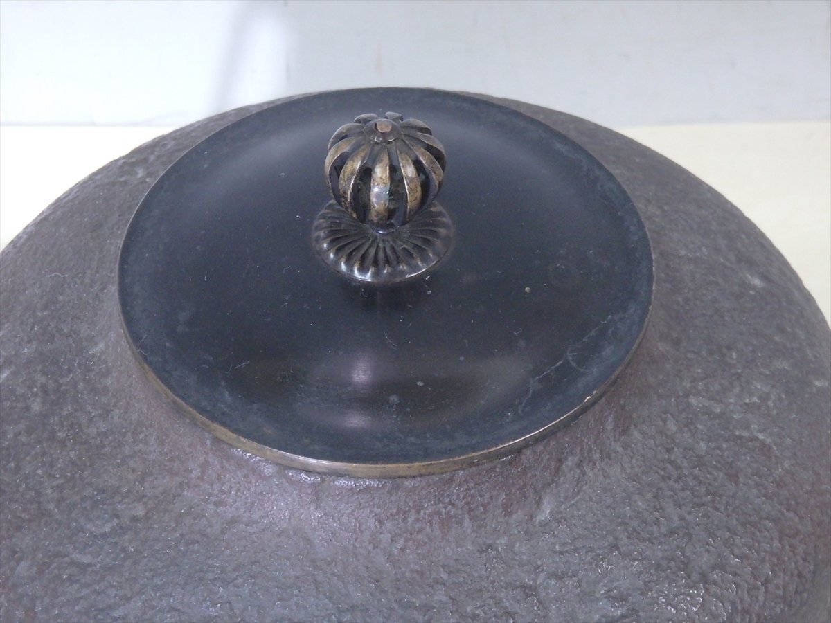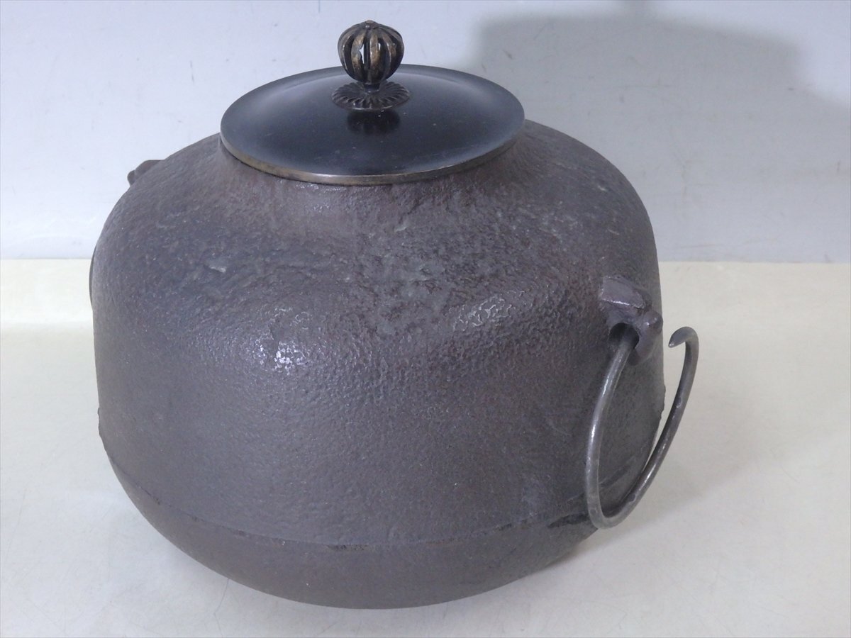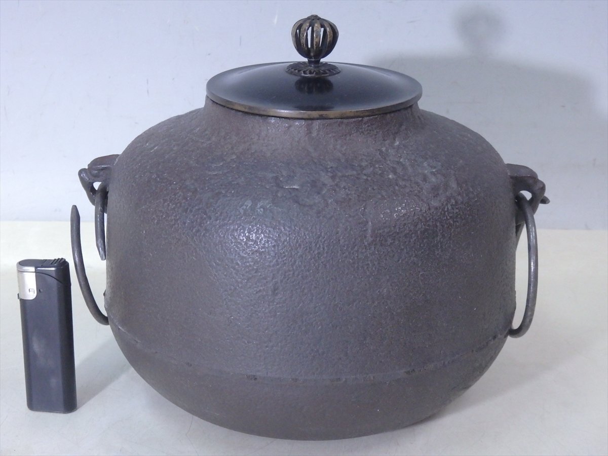 ★あじろ鉄【真形釜(釜鐶付)】重さ約3.6kg 水漏れなし セール! 胴径21.5cm 高さ20cm 蓋は銅製(直径11cm) 茶道具 茶器