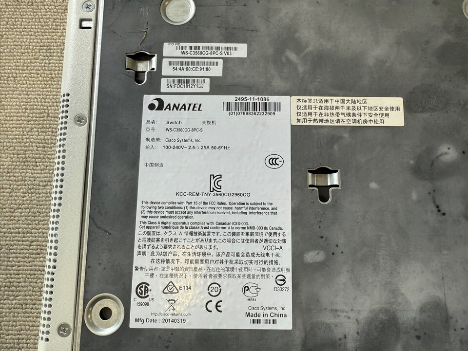 Cisco WS-C3560CG-8PC-S V03 8-Port PoE Switch 初期化済み