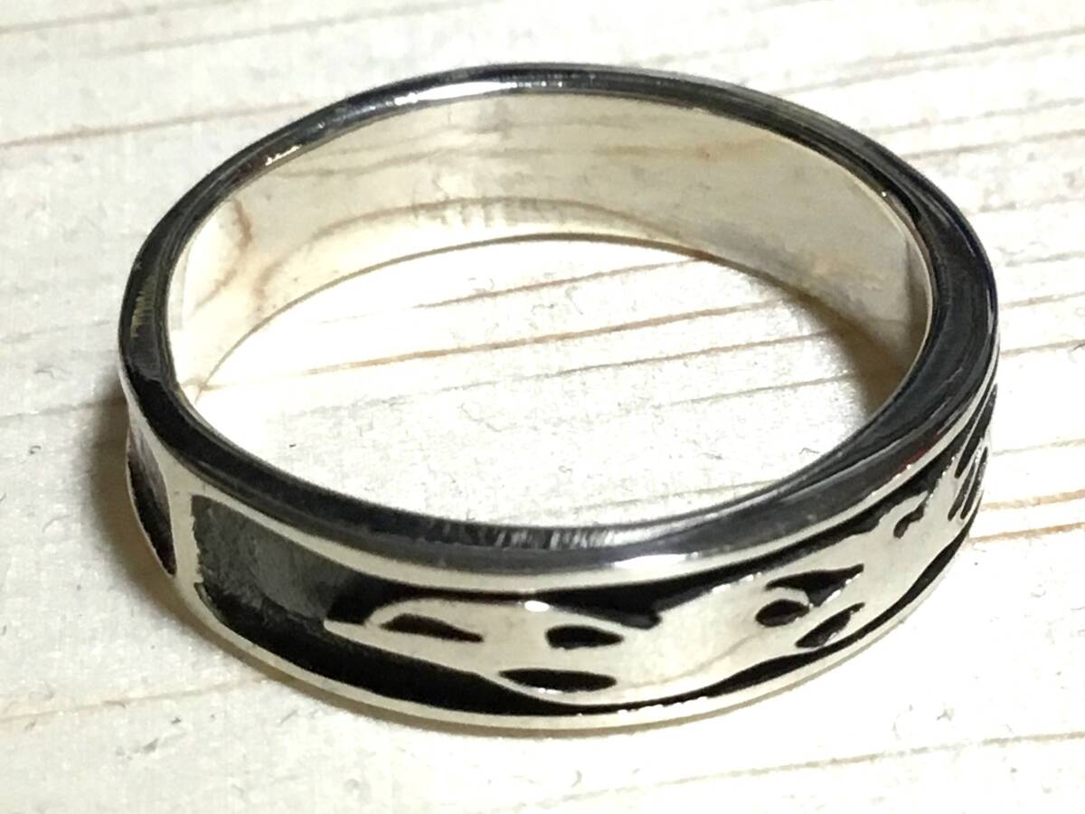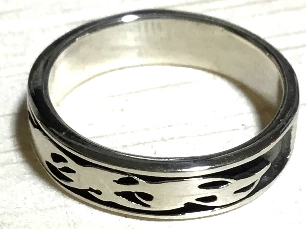 925シルバー製トライバル平打ちリング(幅5mm) 18号新品。