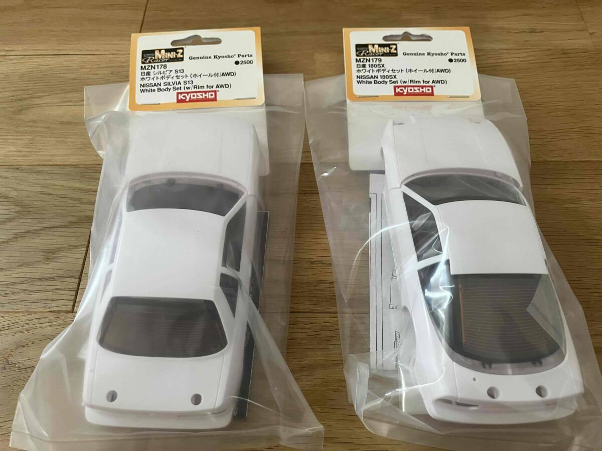 京商☆ミニッツAWDやMRDに! 日産シルビアS13MZN178日産180SXホワイトボディセット (未塗装/ホイール付) シルエイティワンビアに!
