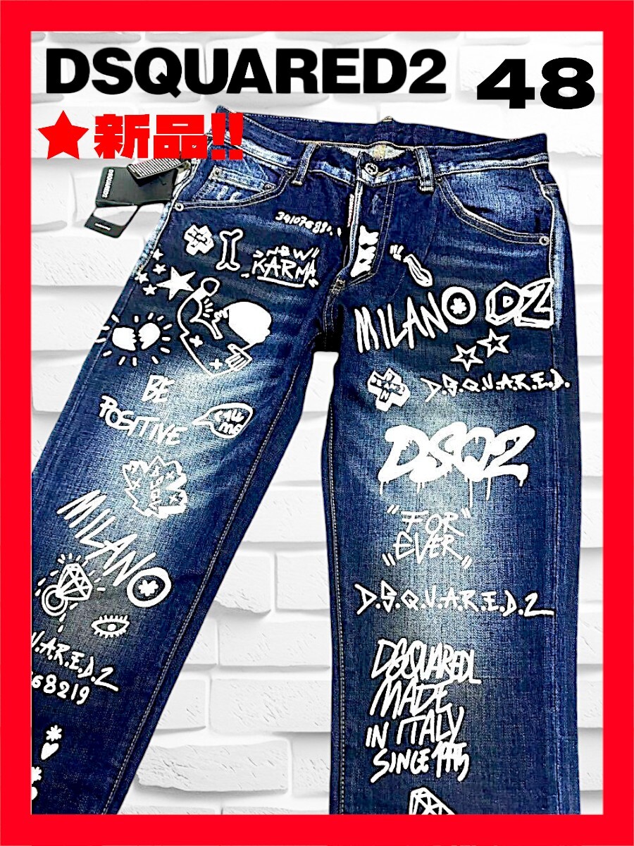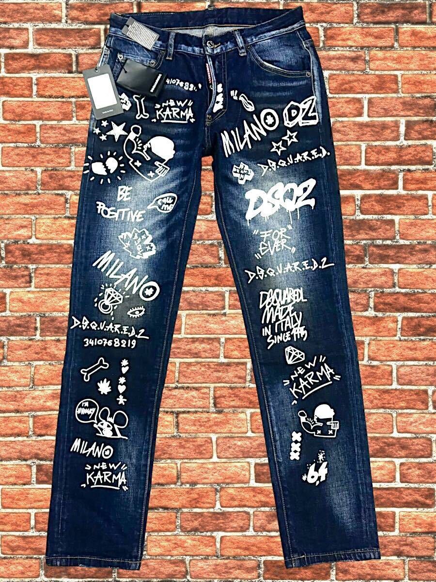 ★新品タグ付き!◆送料無料◆激レア◆定価9.8万◆DSQUARED2,ディースクエアード48*ペイントアート/高級デニム,パンツ/ジーンズ/ストレッチ