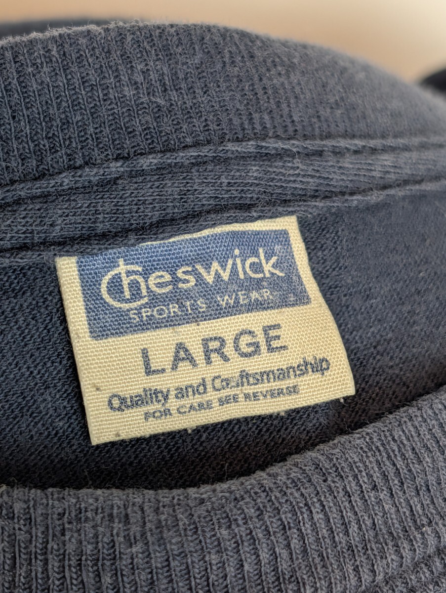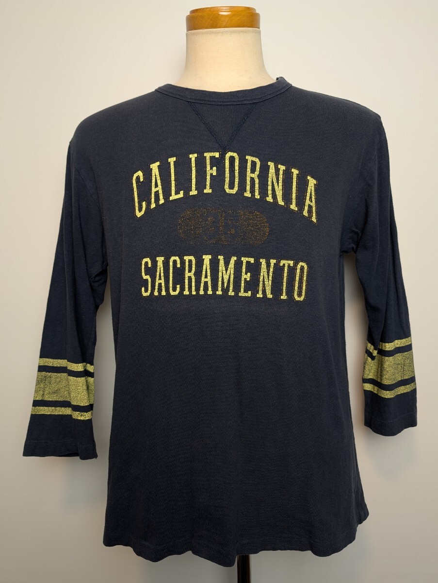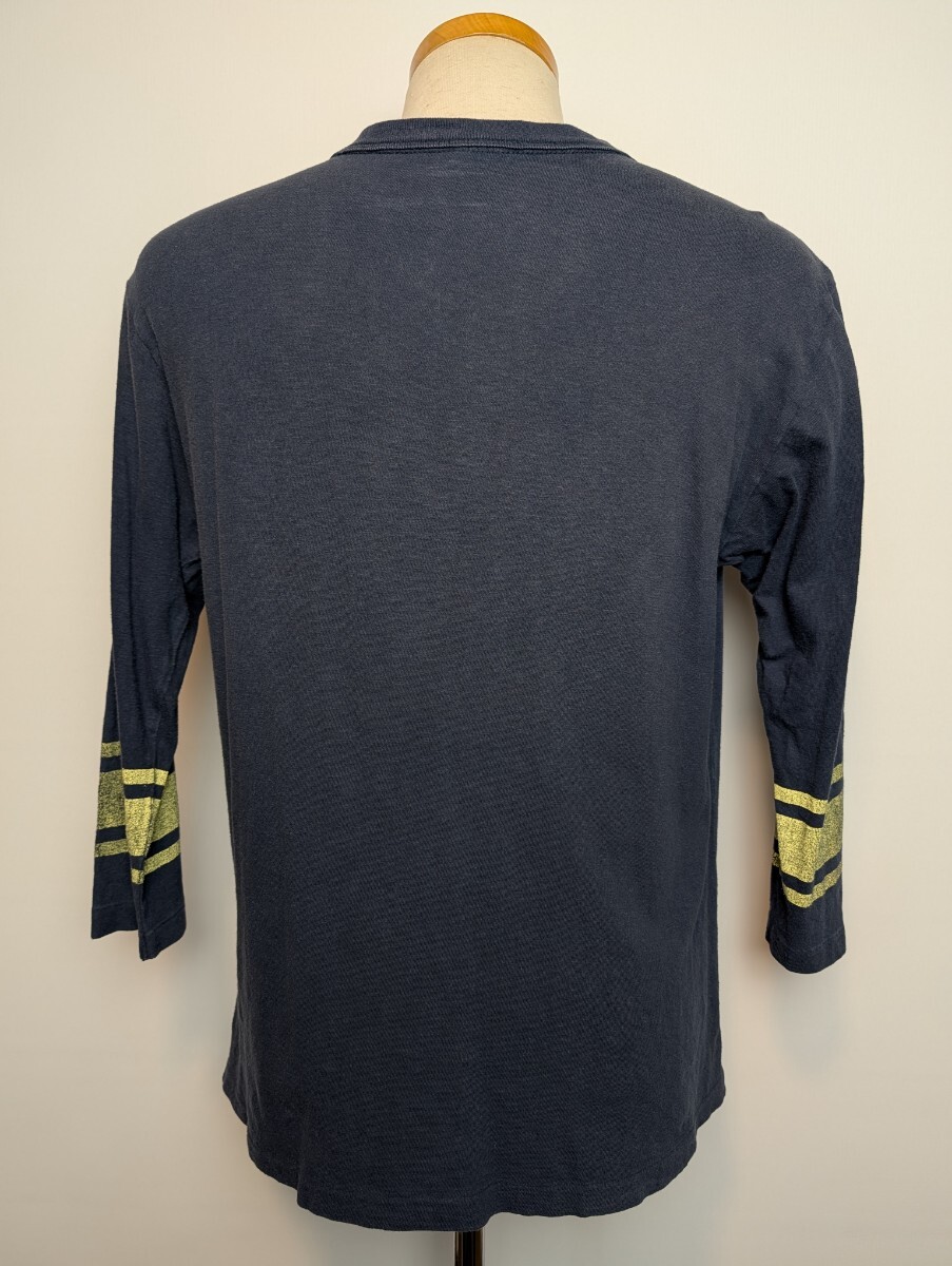Cheswick チェスウィック 七分袖 Tシャツ ネイビー Lサイズ 前V ひび割れ プリント USED加工