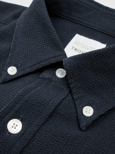 超美品【マッキントッシュフィロソフィー トロッター】 H1M52-164-29 シアサッカー風 ボタンダウン 半袖シャツ (メンズ) 42 紺 ◇38MK6321