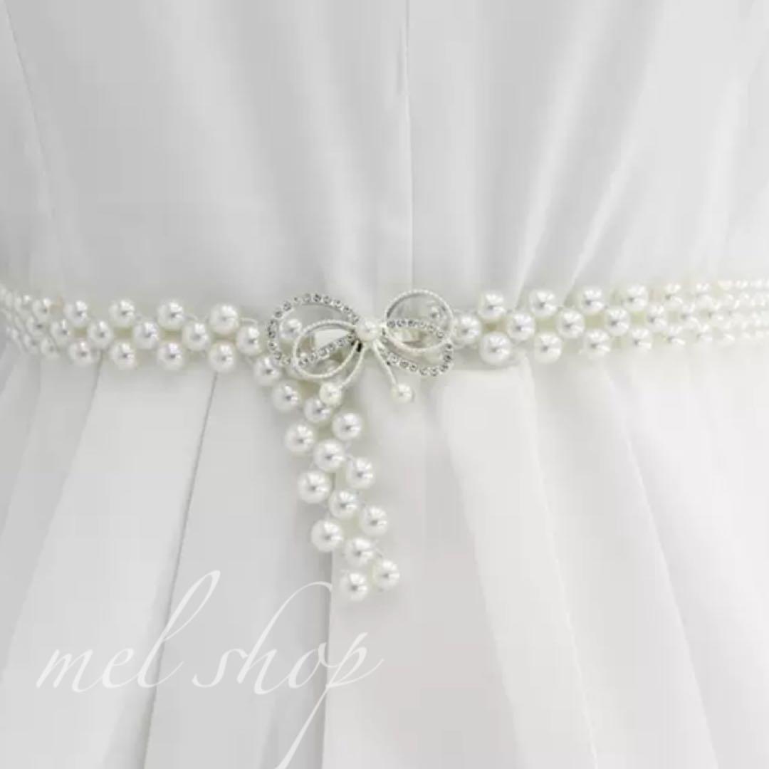 サッシュベルト パール調ベルト レースベルト レディースファッション 細見え ワンピースベルト 着痩せ効果 ウエストマーク 成人式