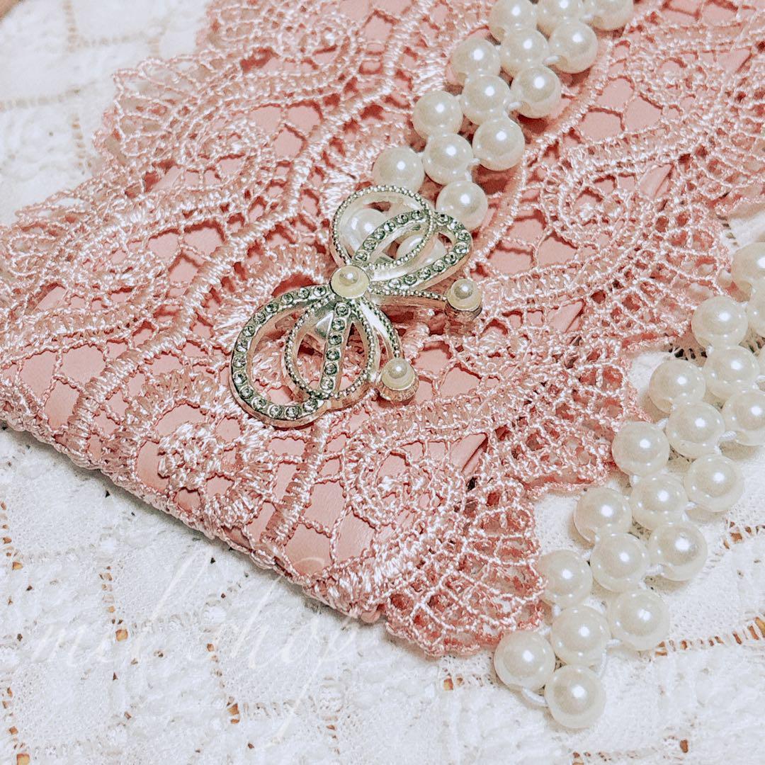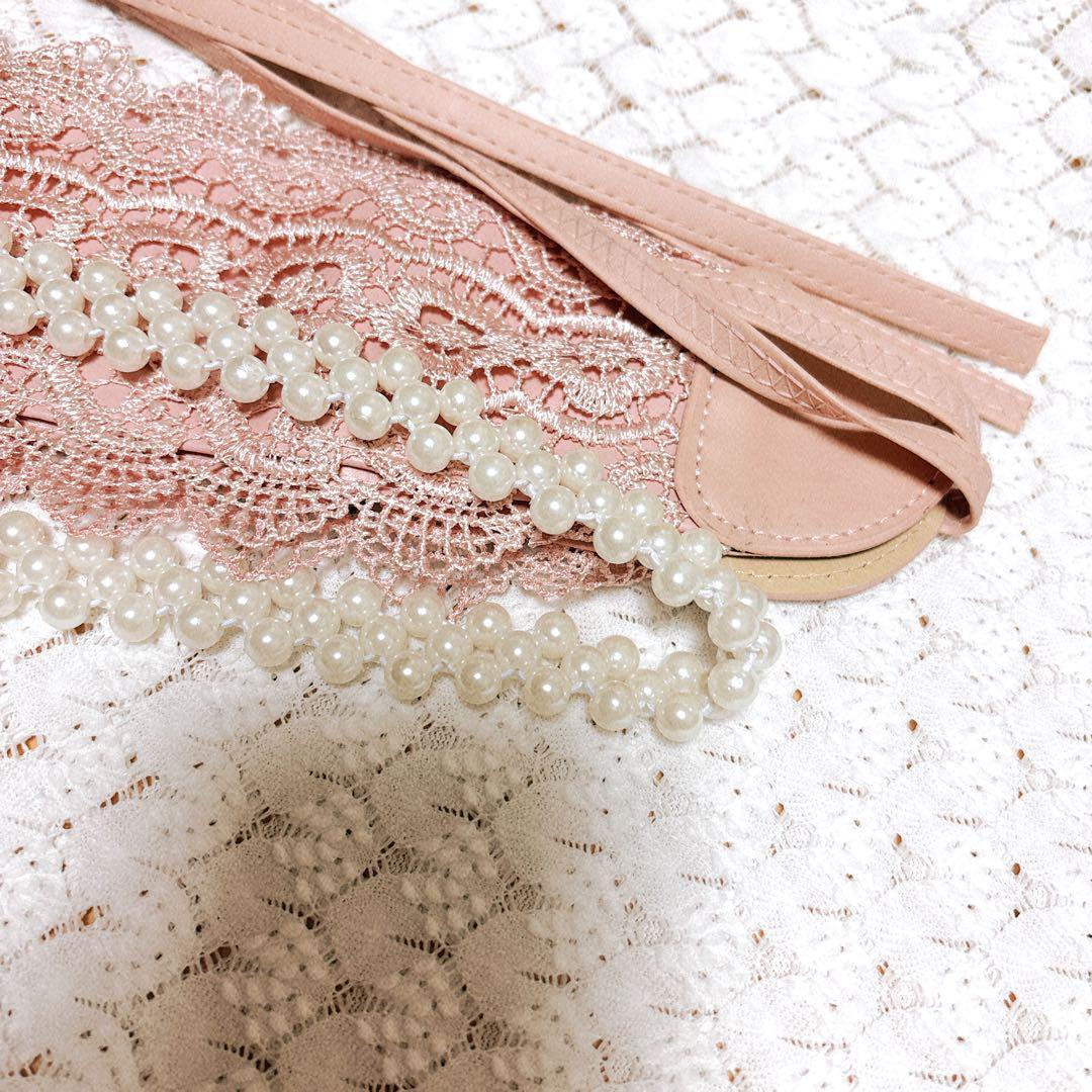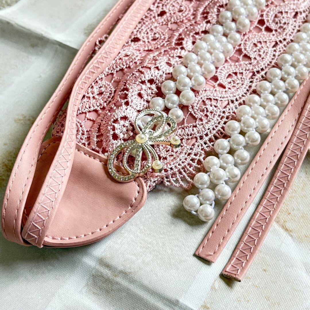 ピンクのレースとパール装飾のリボンが特徴の2点セット