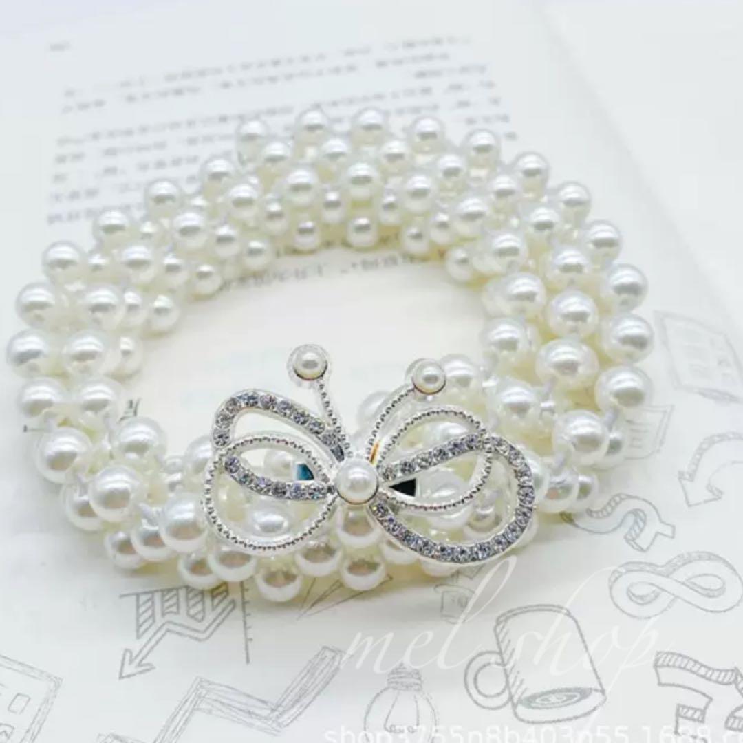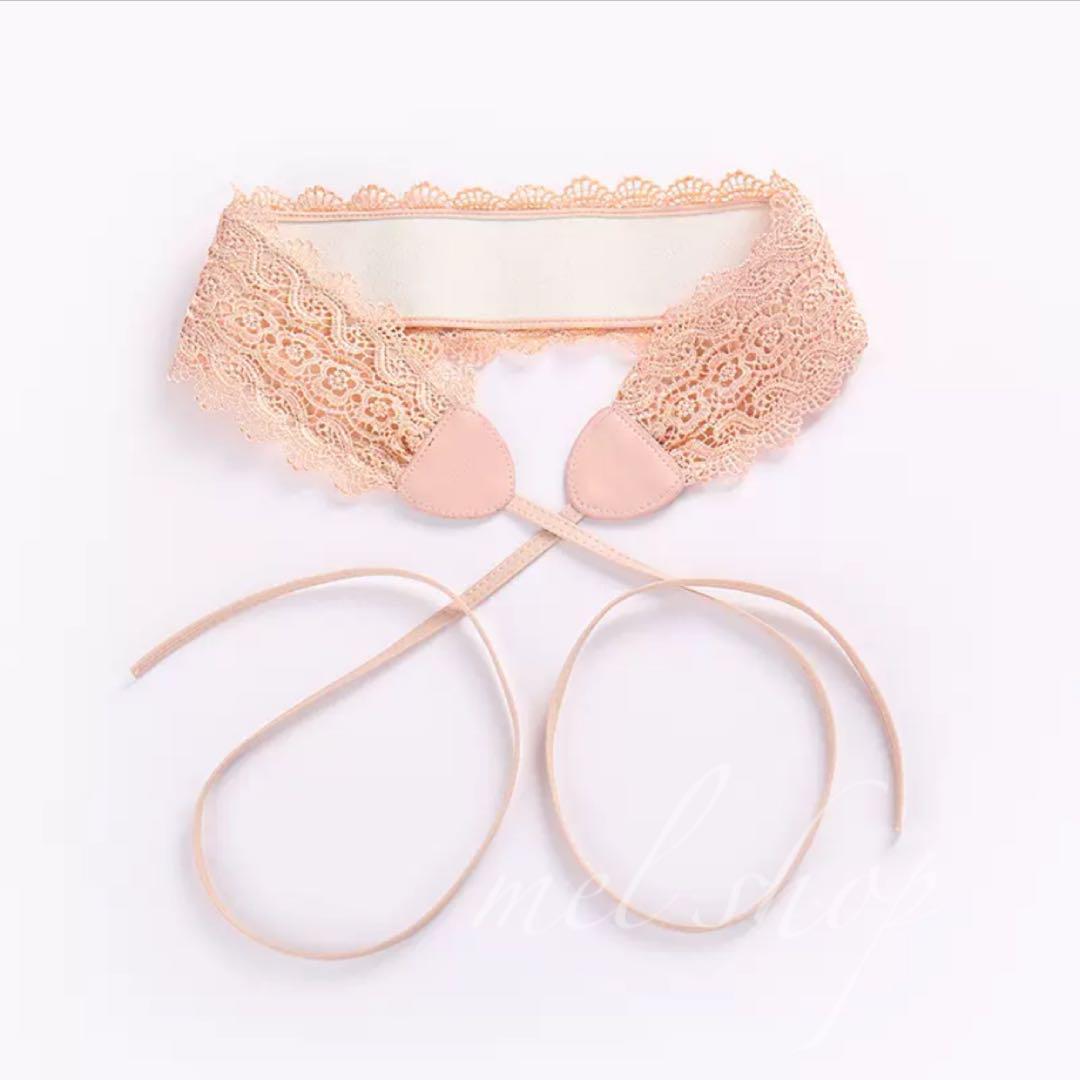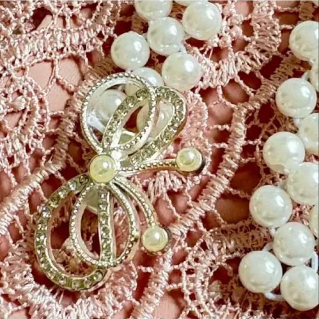 ピンクのレースとパール装飾のリボンが特徴の2点セット
