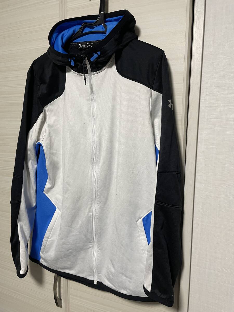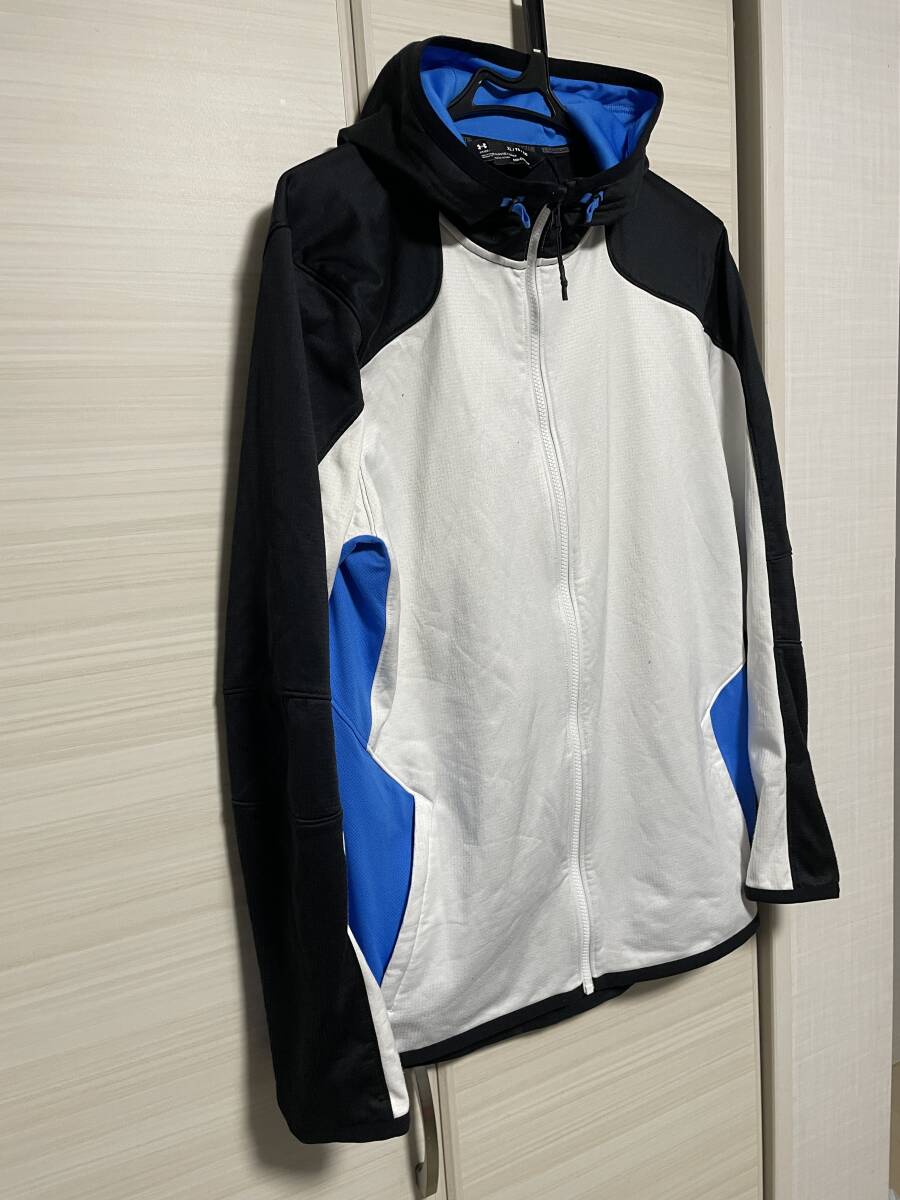 UNDER ARMOUR アンダーアーマー ジャージ パーカー 白×黒 XLサイズ (USED) ~サッカー、フットサル、スポーツ、アウトドア、防風・防寒~