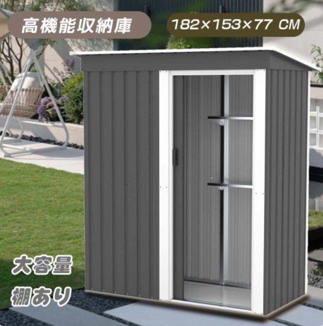 【国内発送】物置 屋外 大型 倉庫 大型物置 戸外収納庫 物置 防水/耐侯 収納可能 ガーデン/庭/田畑/農場 頑丈 大容量 スチール 床なし グレ