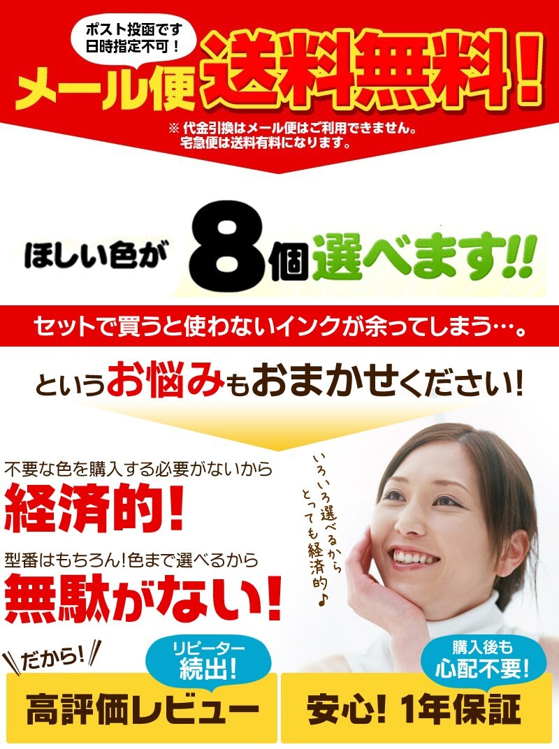 インクカートリッジにはご購入日より1年保証付が付いています。【メール便】での配送で送料無料の商品です。