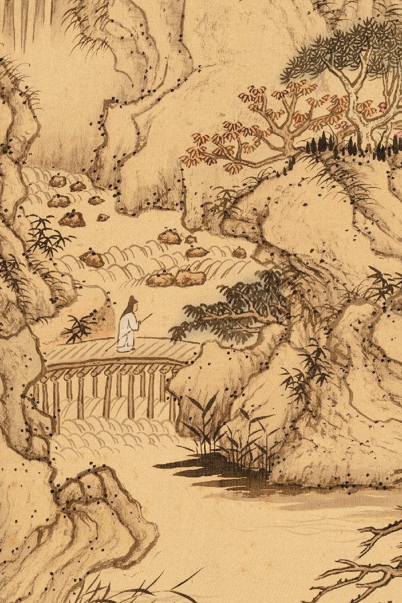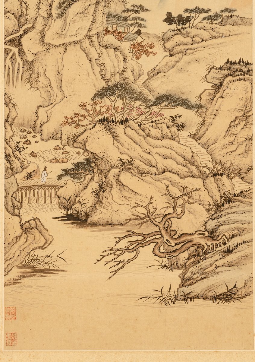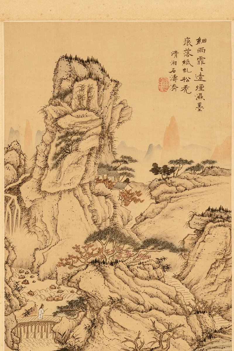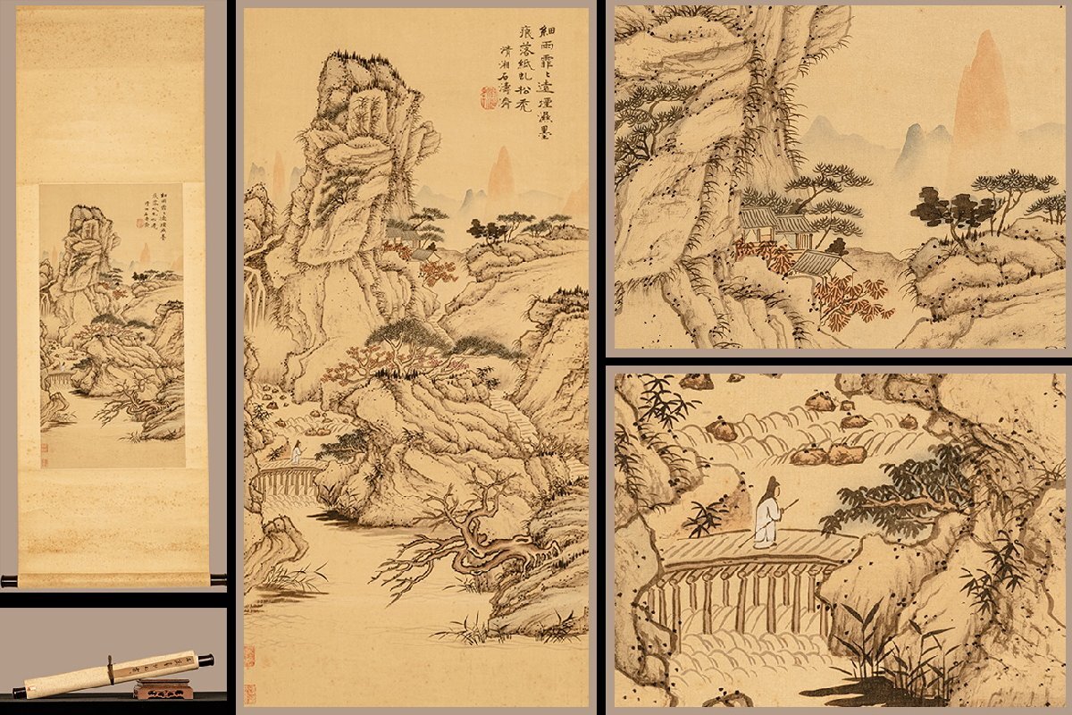 【清】中国清時代画家「石濤書」紙本「山水図・掛け軸」真作 巻き物 中国画 墨寶妙品 中国書画 古美味 古美術7L6-24XC8
