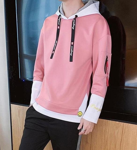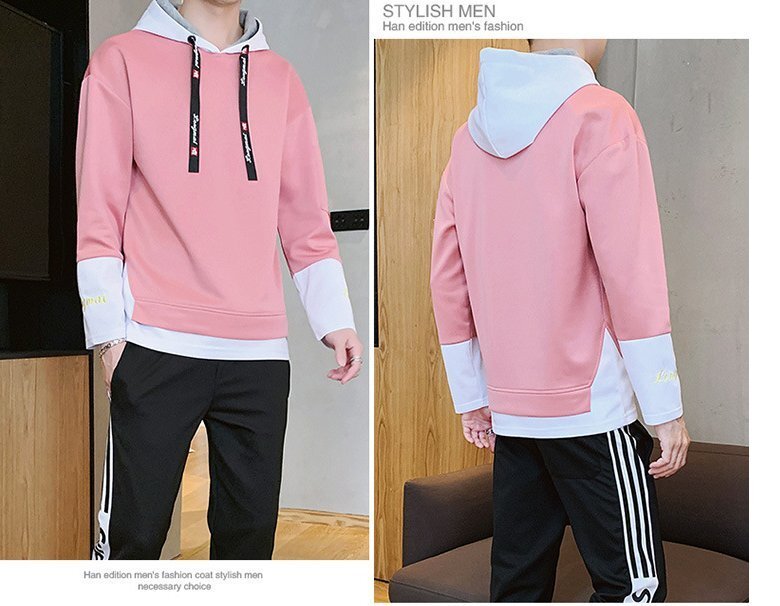 パーカー メンズ 長袖パーカー おしゃれ スポーツパーカー 切り替え フード付き トップス 春秋 冬 ピンク L