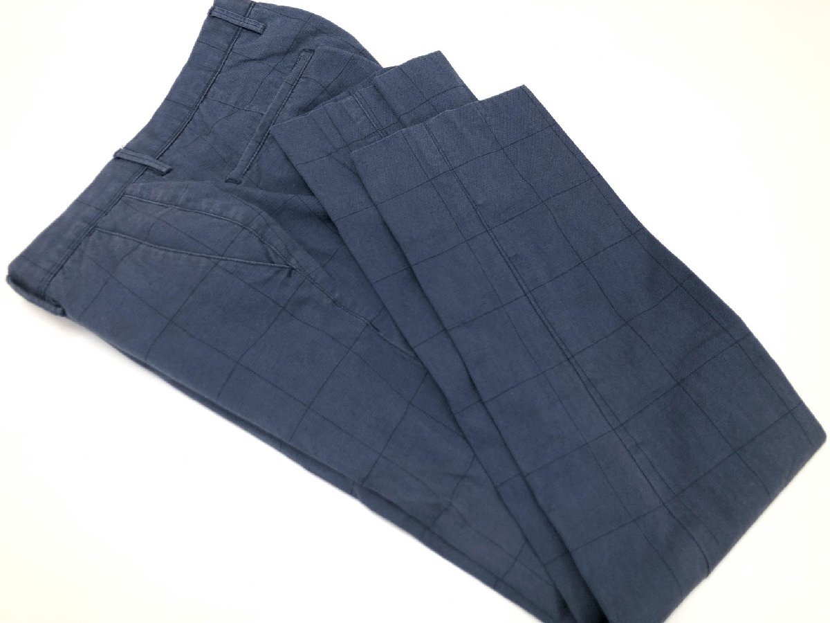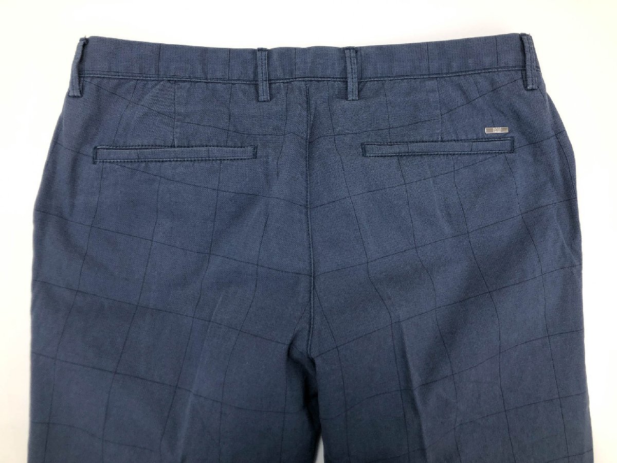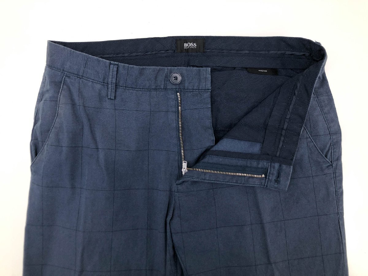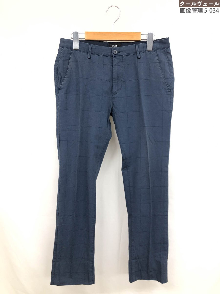 【BOSS ヒューゴボス HUGO BOSS】 コットンテーパードパンツ スラックス (メンズ) size46 格子柄 ネイビー系 ◇33MPA4074◇