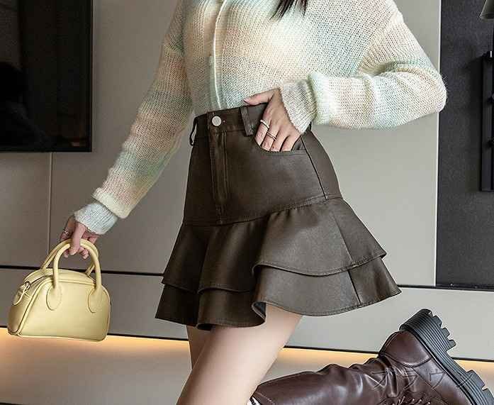ミニスカート フリル カジュアル ボトムス 秋冬 かわいい【大きいサイズあり】 L ブラック