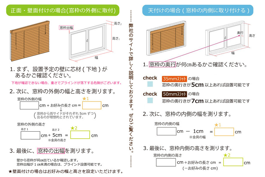 | 製品・仕様 | 幅は1cm単位、高さはスラット単位でサイズ調整オーダーできる、天然バスウッド素材の良質ウッドブラインドです。 詳しくはコチラ |
