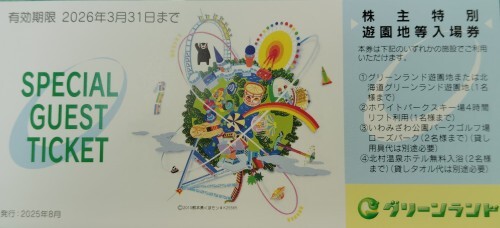 グリーンランド 株主特別優待券1冊(遊園地等入場券枚2枚+ホテルご飲食10%割引券2枚)