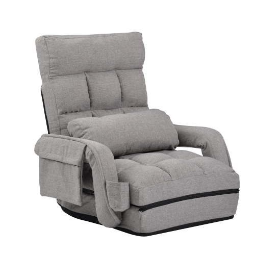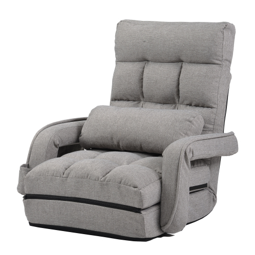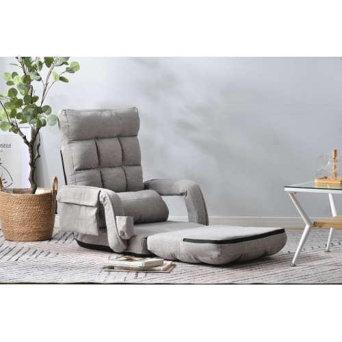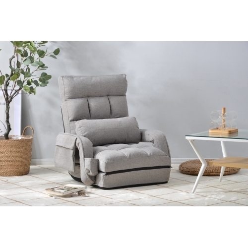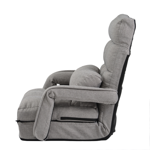 座椅子 リクライニング 14段ギア リクライニングチェアー ファブリック 座イス おしゃれ チェアー いす イス コンパクト【ライトグレー】